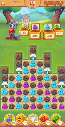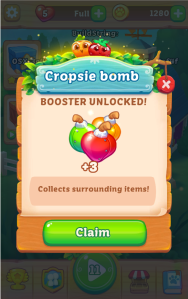 Cropsie Bomb: Creates a blast within an area around it removing and collecting all cropsies. It also triggers blockers and other boosters. We made the blast and bomb activate each other so there could be fun chain reactions and engaging player experience.