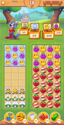 The idea for FHC’s blockers was to build on the original Farm franchise blockers however follow a new set of design pillars. It was important that the blockers were Scalable. Meaning they could be used multiple times in one level and that they Synergize with other blockers, layering them to able level designers to create endless amounts of levels. The blockers must be Rewarding and Engaging so that players have a fun and entertaining experience, keeping them coming back for more.