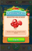 The watering can was created to provide this impact. If you water a cropsie of any colour it multiplies and falls onto the board randomly creating lots of matches and cascades. It’s a fun easy to use booster that creates a lot of impact for a fun experience.